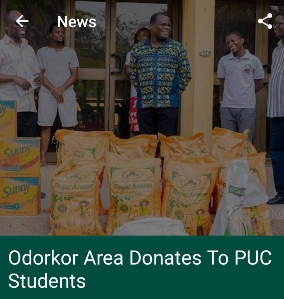 The Public Relations Officer of the college, Dr Daniel Nkrumah on behalf of PUC and the students expressed appreciation to the Odorkor Area, and said the donation was timely and would help address the nutritional needs of the students during the lockdown period.